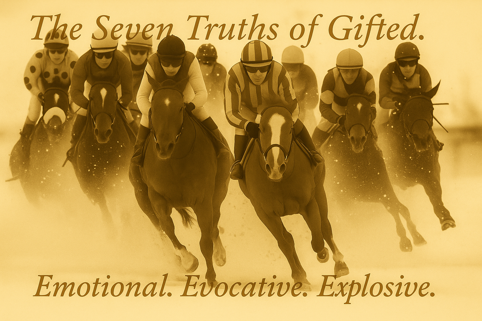 Gifted goes beyond the story of a legendary sportsman’s downfall. Beneath the spectacle, it presents a parable woven from Seven Truths—faults and victories that resonate with our own lives and society. These seven truths were unintended outcomes of the story. Only when I finished did I realise their existence. Behind the glamour and tragedy of the Manifold family lies a deeper reflection: a world grappling with Corrupted Truths, Mis-guided Institutions, the Mis-Understanding of True Patriotism, the slow decline of Western civilisation, the void of Nothingness created by denying any form of Afterlife, Anxious Generations with waning Resilience, Apathy towards those who dare to Dream — yet the enduring power of Art and Artists to heal and unite us.